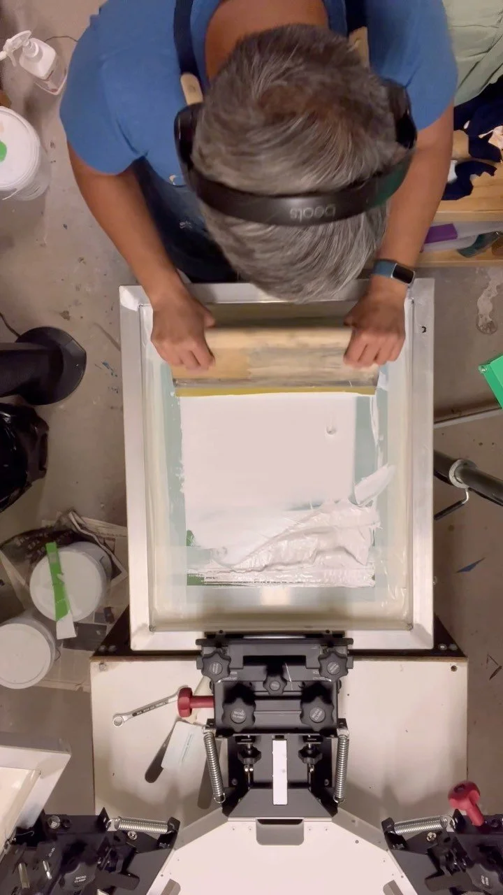 At The Electric Print Studio, we specialize in high-quality handmade custom screenprinting on garments and textiles. We want to make awesome products to elevate your brand. Let us bring light to your designs.