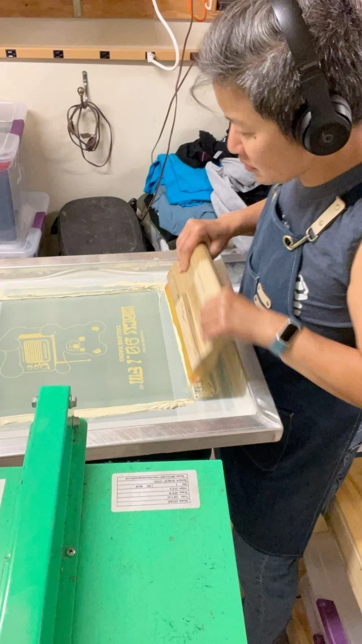 We are locally owned and operated in Hamilton, NY. Every step of production from artwork preparation, mock-ups, screen set-up, and manual printing is completed in our little studio.